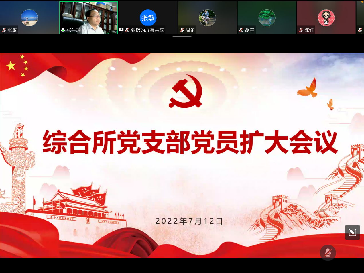 7月12日晚,综合所党支部在线上召开了“强化学习、落实整改、凝心聚力、共促发展”支部党员(扩大)会议。综合所全体教师及学院党委书记田新民参加了会议,会议由综合所党支部书记张生瑞主持。