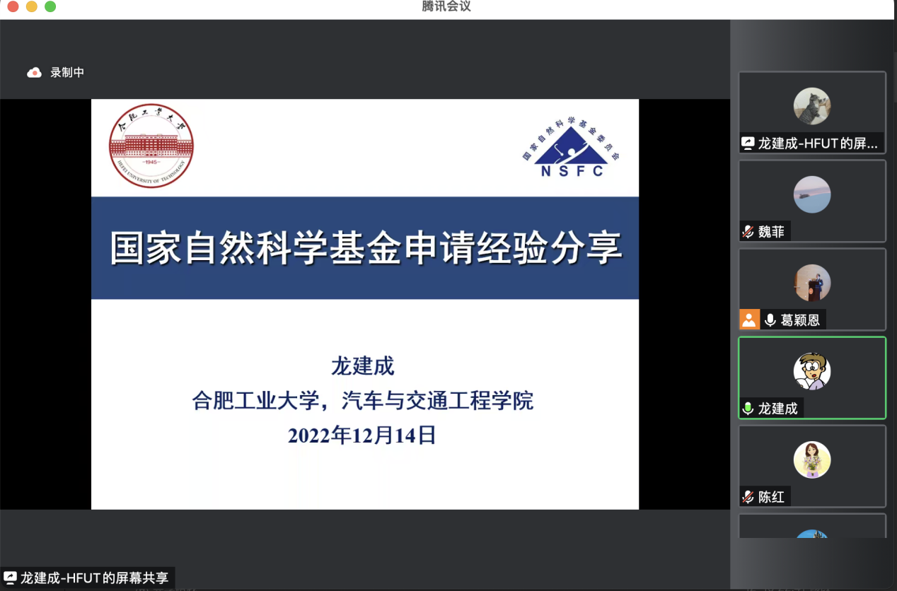 首先,学院邀请合肥工业大学汽车与交通工程学院院长龙建成教授为后宫电影院 教师作了国家自然科学基金申请的辅导报告,龙建成教授从国家自然科学基金的战略定位、申报概要、高质量撰写国家基金申请书等方面,深入细致地剖析如何提高申请书撰写的质量等问题。之后结合后宫电影院 教师的交流提问及多年申报实际经验,从多个方面深入剖析国家自然科学基金项目申报的策略等内容。