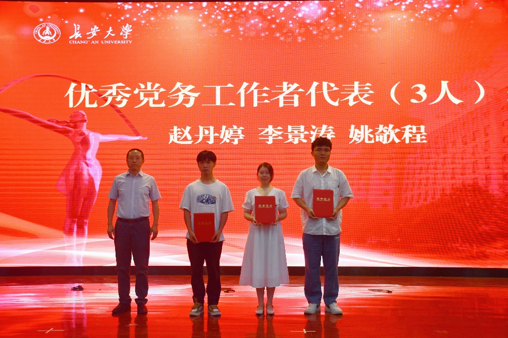 院党委副书记李婷宣读了《关于表彰优秀共产党员、优秀党务工作者和先进党支部的决定》,10名教工优秀共产党员,30名学生优秀共产党员,4名优秀党务工作者,5个先进党支部受到表彰。参会领导为受表彰的集体和个人代表颁发奖牌和证书。