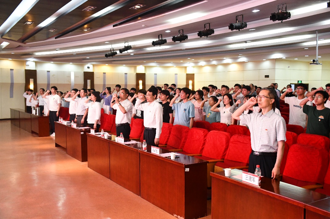 大会在庄严的中华人民共和国国歌中拉开帷幕。院党委书记田新民带领新党员入党宣誓、老党员重温入党誓词。