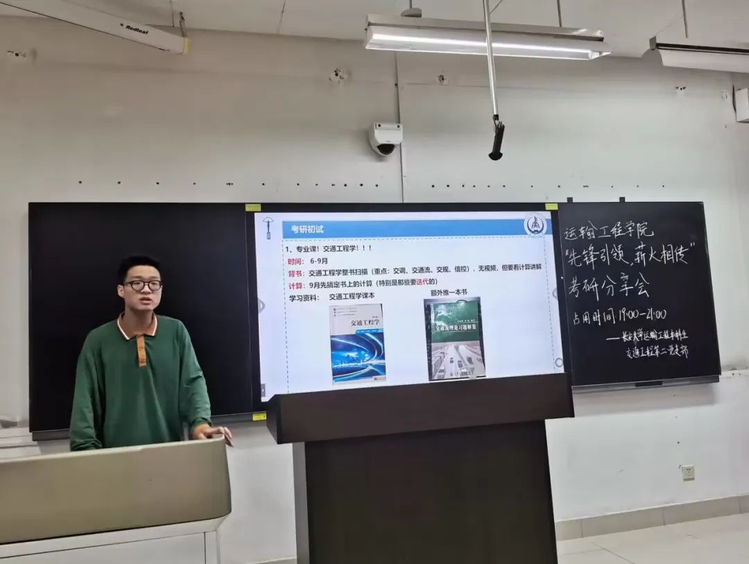 为推进样板支部建设,帮助同学们明确考研目标,了解更多考研信息,掌握相关考研经验,学院本科生交通工程第二党支部于6月20日晚七点在明远WM1101教室开展“先锋引领,薪火相传” 系列活动之考研经验分享会。分享会由杨贻凡主持,分别由考研至东南大学的吴桐、北京交通大学的孟迪康和后宫电影院 的武怡君三名同志展开分享。
