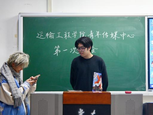 随后,运输青媒主席迟敬蕾进行发言。她对青媒过去一年的工作表示肯定,同时指出了当下青媒在工作沟通中存在一定问题,并提出了相应的改善方案。她鼓励新部员在学习生活上遇到问题时主动找学长学姐提问、交流,希望青媒成员们可以积极表现自己,收获更好的成绩。