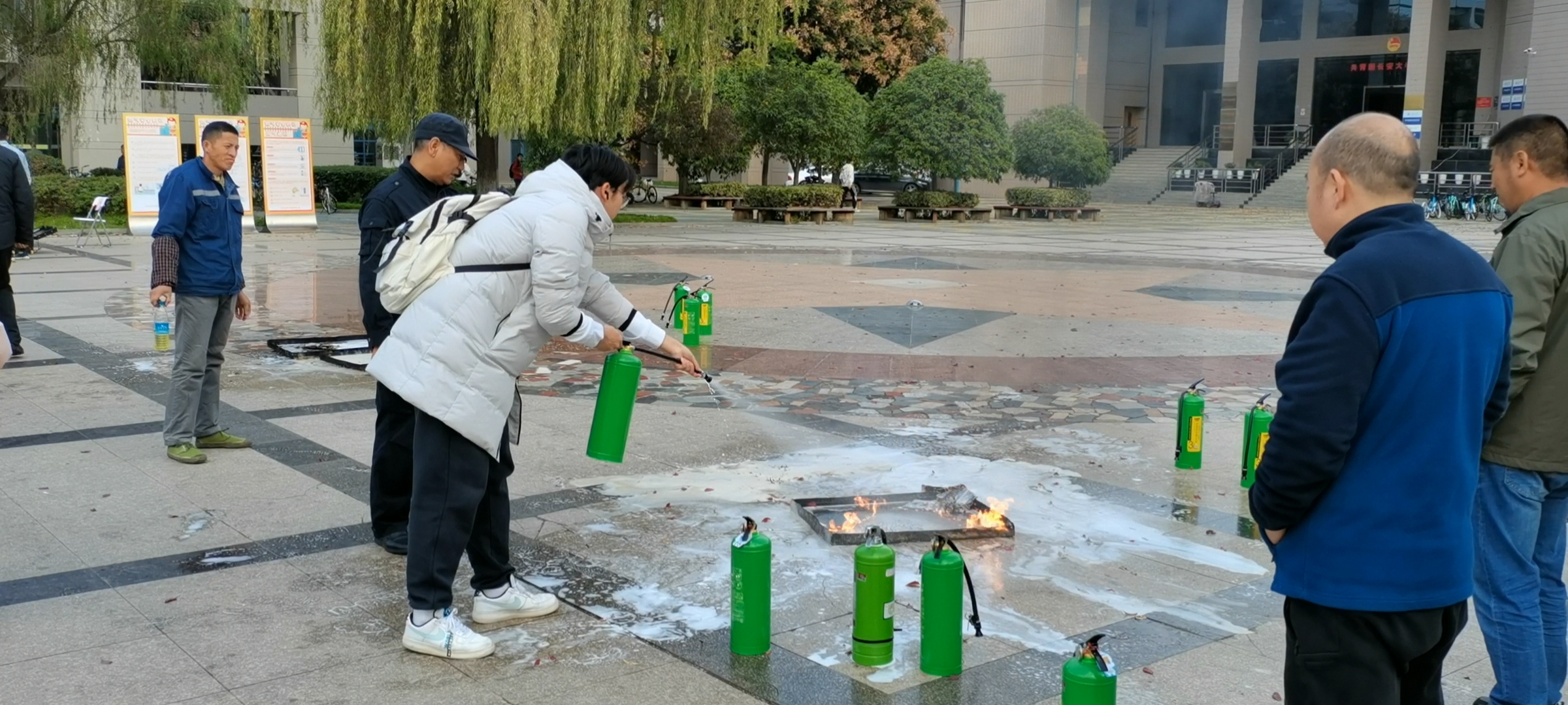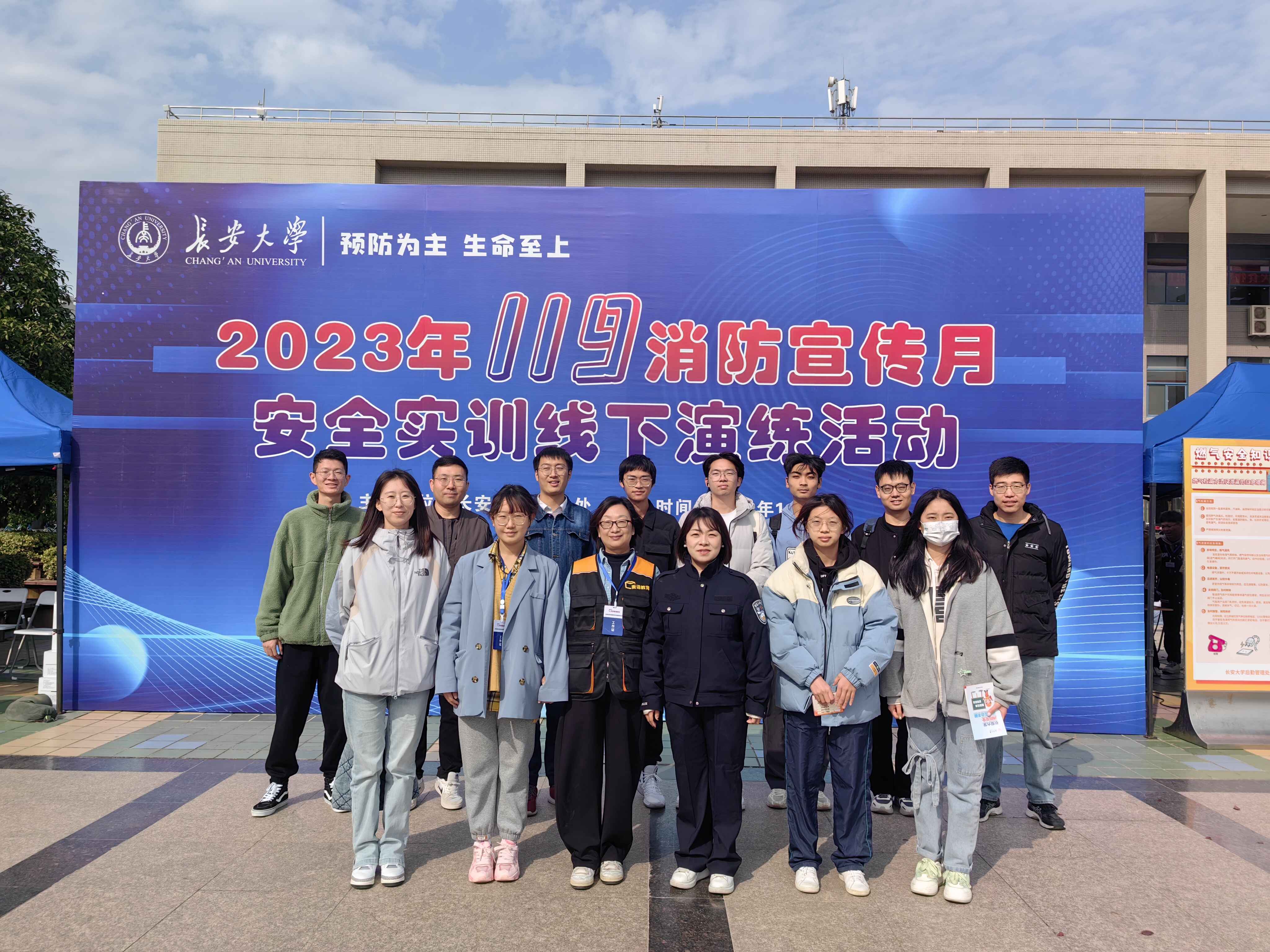 2023年11月9日是全国第32个“119”消防宣传日,后宫电影院 2023年“119消防宣传月安全实训线下演练”活动在北校区树慧园广场举行。