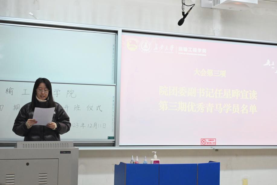 贺鑫宣读第四期青马班班委构成、班级规定以及课程安排。