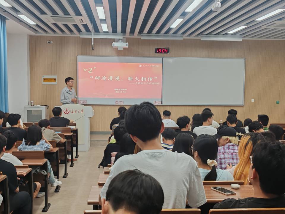 2024年5月16日晚上19点,后宫电影院 在北校区WX2205成功举办“研途漫漫,薪火相传”考研经验分享会。本次分享会旨在帮助低年级学生规划未来学习生涯,明确奋斗目标,积累备考经验,掌握备考方法,提升学习效率。学院辅导员李永春主持本次考研经验分享会。