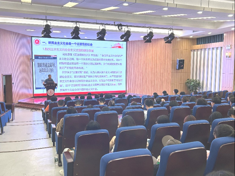 丁永刚教授以“社会主义改造理论与社会主义基本制度确立”为主题,围绕新民主主义到社会主义的转变、社会主义改造道路和历史经验、社会主义基本制度在中国的确立等方面,进行了深入浅出的讲解,生动阐述了从新民主主义到社会主义的转变历程,以及中国社会主义制度确立的划时代意义,并寄语在场师生深刻认识社会主义改造的必要性和必然性,增强对社会主义制度的坚定信心。
