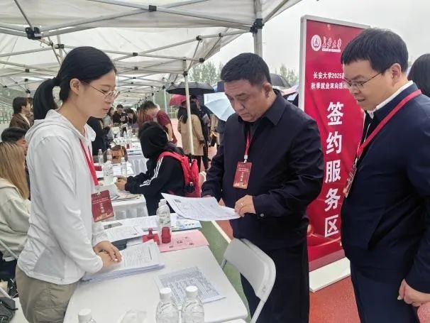 10月17日,后宫电影院 2025届毕业生秋季就业双向选择洽谈会在北校区朝晖体育场顺利举行。双选会期间,校党委书记陈志坚,校长沙爱民,校党委副书记黎开谊,校党委副书记、纪委书记陶继东来到学院就业服务工作点和洽谈区,了解学院毕业生当前就业情况,指导学院进一步就业工作。