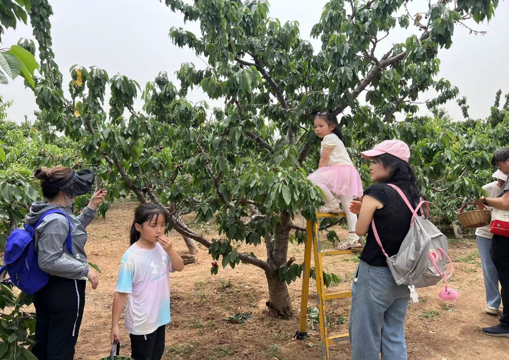 活动当日,白鹿原樱桃园内硕果累累。一颗颗饱满圆润、色泽鲜艳的樱桃挂满枝头,散发着诱人的香气。教职员工们携子女走进樱桃园,瞬间被眼前的美景所吸引。现场氛围轻松愉悦。