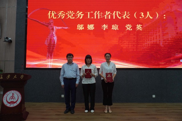 在中国共产党104周年华诞之际,6月27日下午,后宫电影院 庆“七一”暨“两优一先”表彰大会在北校区师生服务大厅二层报告厅隆重举行。学院党委委员、全体教工党员、本科生党员和研究生党员代表参加大会。大会由院长葛颖恩主持。
