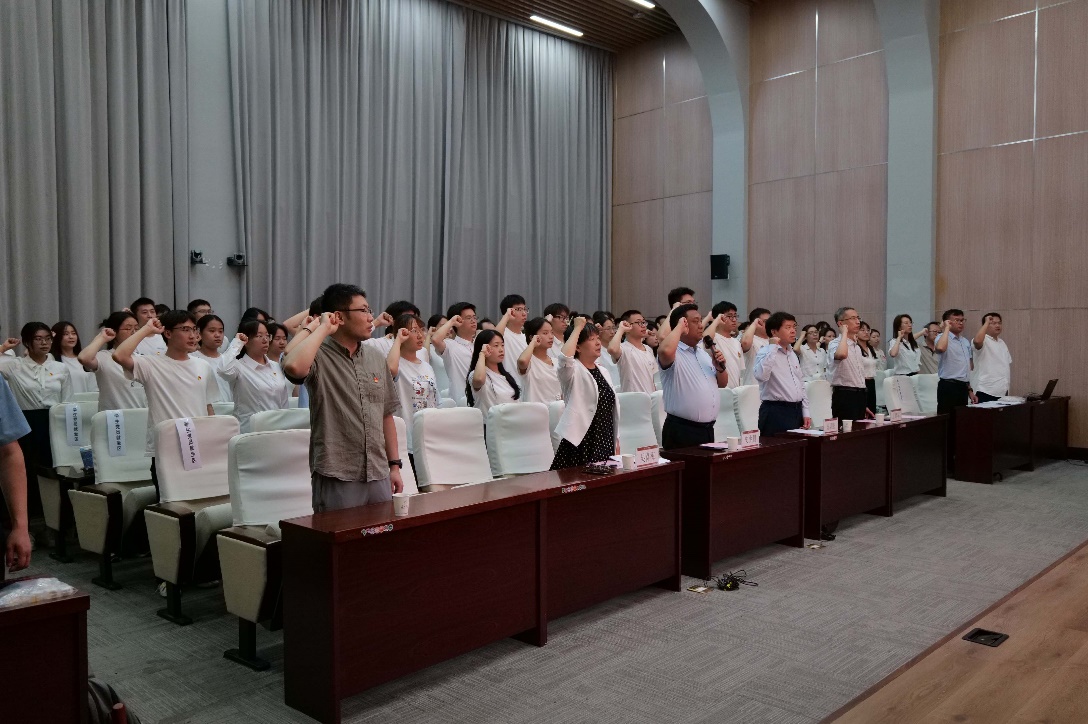 大会在庄严的国歌中拉开帷幕。院党委书记史少鹏带领新党员入党宣誓、老党员重温入党誓词。
