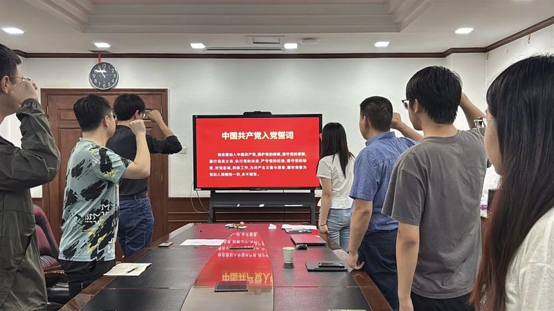 支部书记领誓,全体党员高举右拳,重温入党誓词。铿锵有力的宣誓声回荡在会场,彰显出博士生党员坚定不移的政治信念和矢志奋斗的决心。