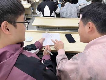 宿舍默契挑战赛设置“绘画传递”与“曲库考验”两大创意环节,以生动有趣的方式拉近同学们之间的距离。“绘画传递”中,宿舍成员依次接力作画、传递信息,由最后一人猜题。大家在“灵魂画作”的趣味碰撞中,展现出彼此之间的默契与心有灵犀。“曲库考验”环节则播放音乐片段,各宿舍踊跃抢答歌曲名与歌手,答对加分、答错扣分,唱出歌词更能赢得额外奖励。现场气氛紧张热烈,欢声笑语此起彼伏。