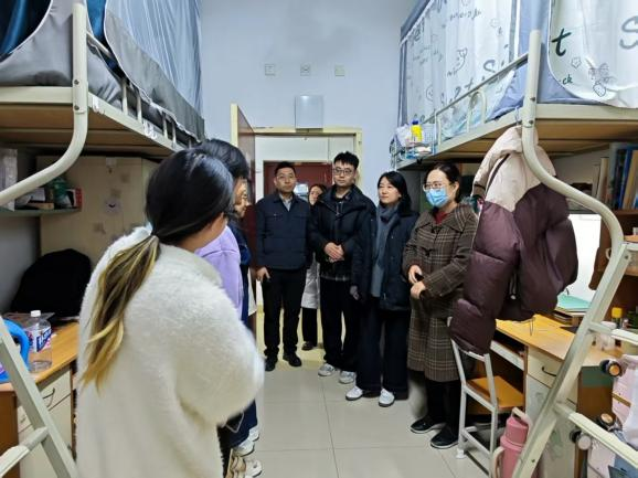 暖心排查护成长,温情走访聚合力。学校学院领导老师深入走访学生宿舍。走访过程中,重点检查宿舍安全隐患,仔细查看宿舍卫生状况与消防设施完好情况,提醒同学们严格遵守宿舍管理规定,规范使用电器,妥善保管个人财物。除安全检查外,领导老师更注重与学生的暖心交流,详细询问学生在学习科研、生活适应、就业规划等方面的困难与需求,耐心解答学生疑问,鼓励同学们相互关心、互帮互助,共同营造“安全有序、文明和谐、积极向上”的宿舍氛围。
