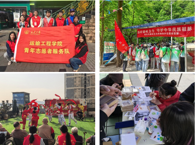 强化实践育人体验效果,促进学子全面成长。学院始终以学生成长为中心,不断创新实践形式、丰富实践内容,着力提升实践育人的参与感、获得感与实效性,全年开展各类实践活动11种,累计22场次,425人次学子踊跃参与,累计服务时长超1400小时,惠及学校师生、社区居民、患病儿童、孤寡老人等各类群体470余人次。构建了常态化与特色化相结合的实践项目体系,常态化项目通过固定周期、稳定团队的服务模式,让学生在长期坚持中锤炼耐心、责任心与劳动能力;特色活动创新融入创意手工、公益推广、劳动实践等元素,让实践活动更具吸引力与感染力。实践成效充分彰显:学生在交通运输科普讲解大赛、陕西省科普讲解大赛等国家级、省级赛事中斩获三等奖、二等奖等优异成绩,多人荣获国家奖学金、国家励志奖学金、“长大之星”、“奉献之星”等荣誉称号,实现了知识运用、能力提升与价值塑造的有机统一,让每一位参与实践的学生都能收获成长、绽放光彩。
